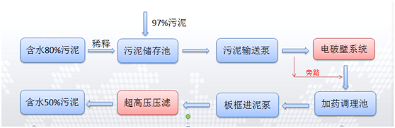 目(mu)前(qian)污(wu)水處理廠將含(han)水率97%的污泥進行(xing)壓(ya)榨脫水,主要(yao)采用板(ban)框壓(ya)濾方式。板(ban)框脫水目前有兩種(zhong)加藥調(diao)理方式,一種(zhong)是添加PAC和PAM進行板(ban)框脫水,此種方法成本較高(gao)、脫水效果不(bu)理想(含水率一般(ban)在65%左(zuo)右)、運(yun)行周期(qi)長。